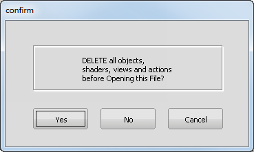A dialog box appears, asking if you want to delete all objects, shaders views, and actions. Click Yes.