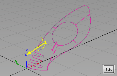 The surface is selected and highlighted in yellow, and a Build button appears in the bottom right corner of the view.
