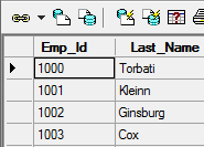 The grid in the Data View window contains the following elements: