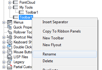 A new flyout on the toolbar is created and new toolbar is also created based on the pull-down menu that was used.