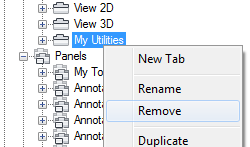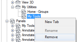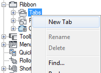 A new ribbon tab (named New Tab) is placed at the bottom of the Tabs node.