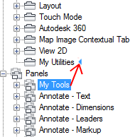 Use the visual indicator bar to specify the position of the ribbon panel on the ribbon tab.