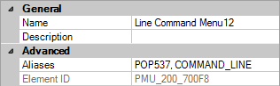 - In the Properties pane, in the Display section, make the desired change to the Name property (not the Command Name or Command Display Name properties).
