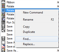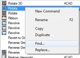 1. In the Customize tab, Command List pane, right-click anywhere in the Command list. Click Find.