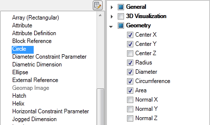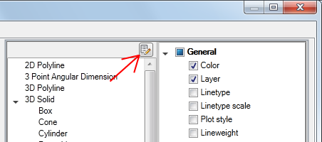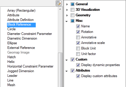 If an object type is checked, the properties for that object type are displayed on the Quick Properties palette when an object of the same type is selected, and when QPMODE is set to 2 and PICKFIRST is turned on. Clear the check mark next to an object type to remove the selected object type from the Quick Properties palette.