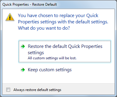 - In the Customize tab, Customizations In <file name> pane, select Quick Properties.