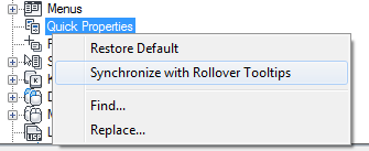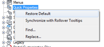 - In the Customize tab, Customizations In <file name> pane, right-click Quick Properties.