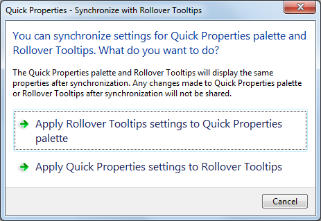- Click Apply Rollover Tooltips Settings to Quick Properties Palette.