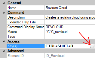 - In the Properties pane, click in the Key(s) box, and then click the […] button to open the Shortcut Keys dialog box.