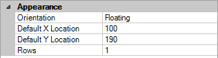 - In the Rows box, enter a number. Enter the number of rows to wrap the buttons on the toolbar if possible. 0 is the default value. (Available only if Orientation is set to Floating.)
