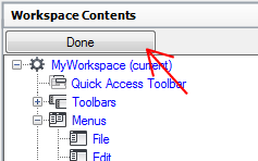 - In the Workspace Contents pane, select the Quick Access Toolbar node.