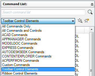 - In the Command List pane, Categories list, select Ribbon Control Elements.