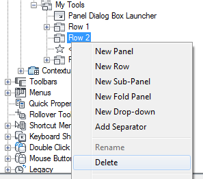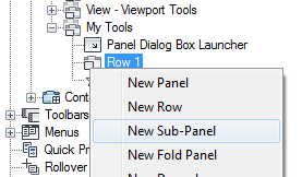 - Right-click the ribbon panel to which you want to add a row. Click New Row.