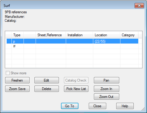 Surfer goes to the panel layout drawing and zooms on the physical representation of the push button. Notice that the description for 9PB updated to reflect the change you made to the schematic component.