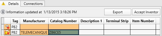 If you have differences in the tag, installation, and location attributes—manually update the electrical component's value with the equivalent Inventor values since these attributes are not part of the Accept Inventor operation.