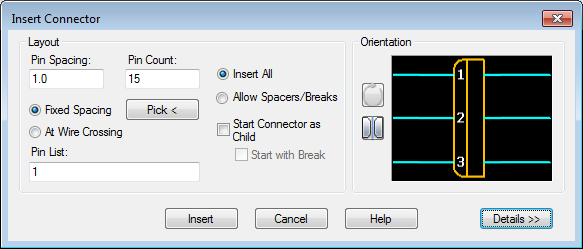 The Insert Connector tool generates a connector symbol from user-defined parameters. The symbol is created on the fly and inserted as a block insert into your active drawing file. Since they are created on an as needed basis, it eliminates the need for you to create and maintain a library of connector symbols.