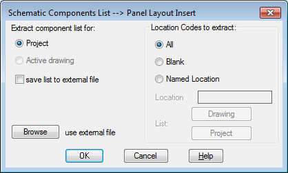 In the Schematic Component List -- Panel Layout Insert dialog box, verify: