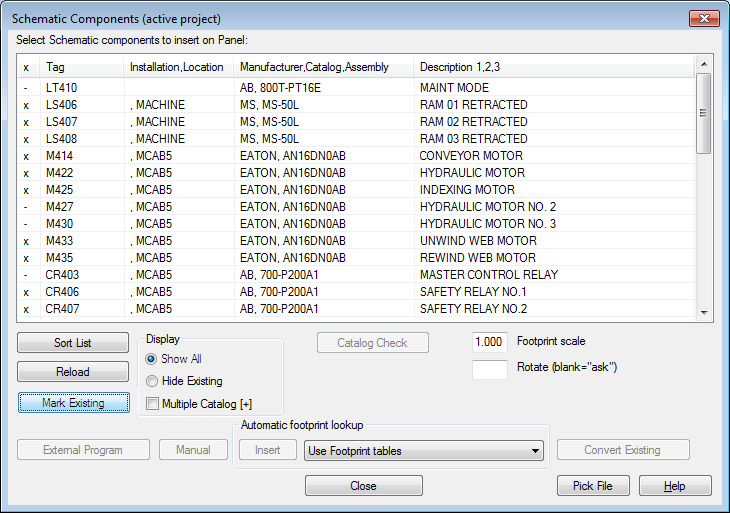 Note: The Manual button is used when schematic component footprints do not have a manufacturer and catalog number defined.