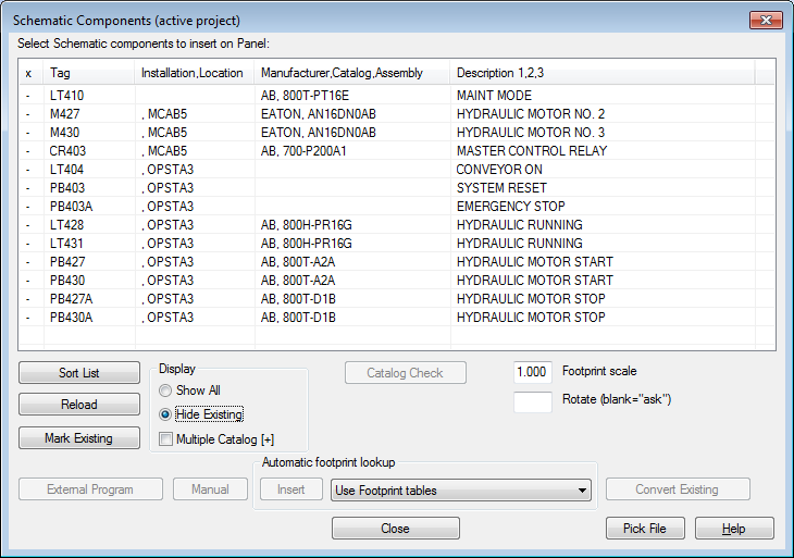 In the Schematic Components (active project) dialog box, click Mark Existing. An