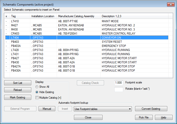 In the Schematic Components (active project) dialog box, select LT404 OPTSTA3 CONVEYOR ON.