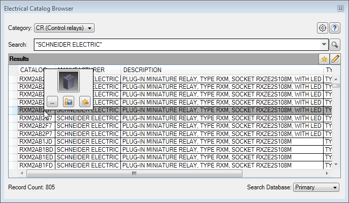 The AutoCAD Electrical Catalog Browser is also available within Inventor. The Electrical Catalog Browser accesses the same catalog database as AutoCAD Electrical. Associate 3D parts to catalog values and insert those parts by selecting the catalog value from the Catalog Browser. The catalog database editing capabilities are also available using the Catalog Browser in Inventor.