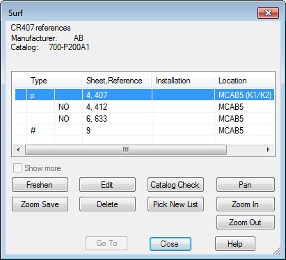 Use the AutoCAD Electrical Surf utility to quickly move from component reference to reference across the project drawing set.