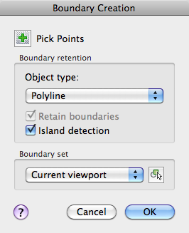 Prompts you to select the objects that define the boundary set. boundary includes only the objects that can be used to create a region or closed polyline when it constructs the new boundary set.