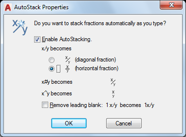 Converts the forward slash (/) to a diagonal fraction when AutoStack is turned on.