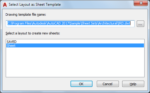 Lists and specifies the name of the layout in the drawing template file to be used for new sheets.