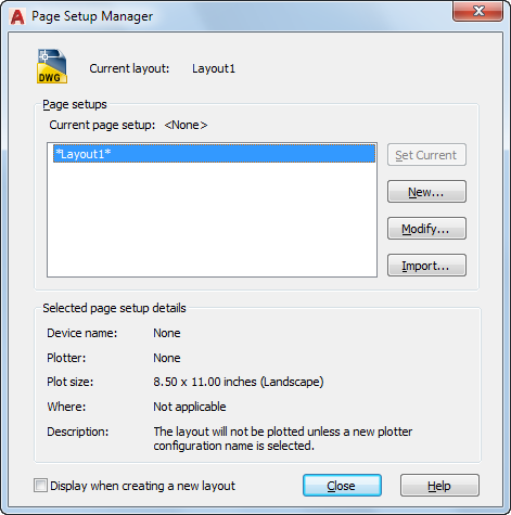 You can also create named page setups, modify existing ones, or import page setups from other drawings.