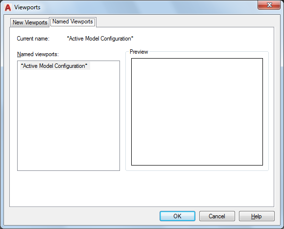 Tabs for Model space viewports: New Viewports—Model Space, Named Viewports—Model Space