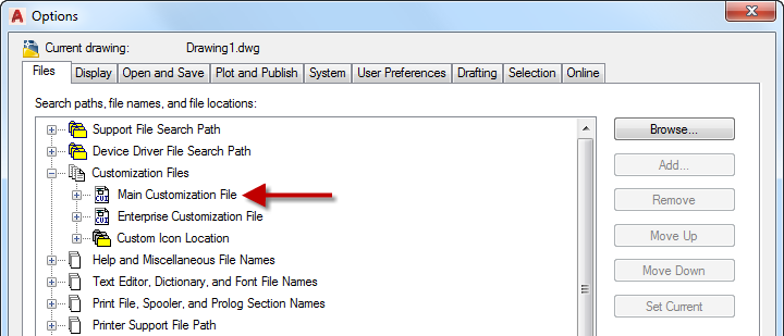 Customization (CUI/CUIx) files define user interface elements such as the Quick Access toolbar (QAT), ribbon panels and tabs, palettes, “classic” toolbars, and pull-down menus. Based on the previous release from which you are migrating, the Migrate Custom Settings utility looks for the CUI or CUIx file specified by the Main Customization File setting. The main customization file is migrated in addition to the partial customization files loaded in the main CUI/CUIx file.