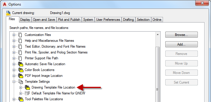 Drawing template (DWT) files are used to create new drawings. The drawings created using a DWT file contain all of the styles and drawing objects defined in the DWT file. The custom DWT files from the previous release are migrated into a subfolder named after the release in which they were migrated; the naming convention of the subfolder is Product Name Templates. The Product Name Templates subfolder is created under the folder defined by the Drawing Template File Location setting.