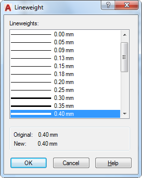 Assigns a lineweight to a layer. You can customize lineweights to plot with other values by using the Plot Style Table Editor.