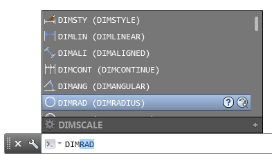 If you start typing the name of the command or system variable on the command line, the autocomplete feature displays your choices. For example, if you enter dim, all commands and system variables that begin with those letters are listed as shown.