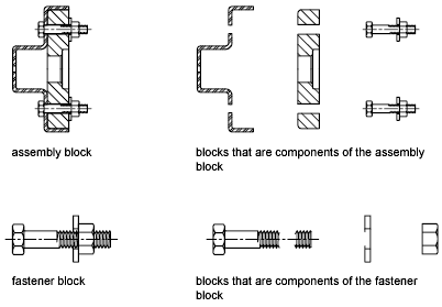 Block references that contain other blocks are known as nested blocks. Using blocks within blocks can simplify the organization of a complex block definition.