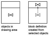 A block is essentially a block definition that includes the block name, the block geometry, the location of the base point to be used for aligning the block when you insert it, and any associated attribute data. You can define a block from drawing geometry either in the Block Definition dialog box or by using the Block Editor. Once the block definition is created, you can reference it in the same or a different drawing.