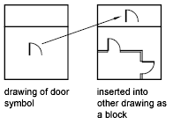 With either method, you create an ordinary drawing file that can be inserted as a block into any other drawing file. Use WBLOCK when you need to save several versions of a symbol as separate drawing files, or when you want to create a drawing file without leaving the current drawing.