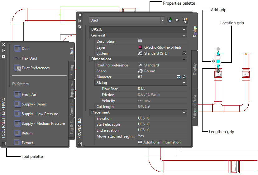 Duct system in AutoCAD MEP HVAC workspace