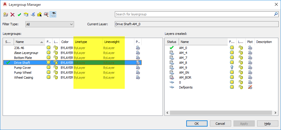 In the Layergroup Manager, you can now specify the layergroup linetype and lineweight, just like how you specify the layergroup color.