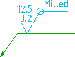 You can also specify surface texture requirements on a top view, using surface indication leaders.