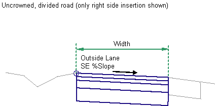 The attachment point is (a) at the inside edge of lane on finished grade, if the insertion point is Crown, or (b) at the outside edge of travel way,if the insertion point is at the edge of travel way. This component can be attached to either the left or right side.