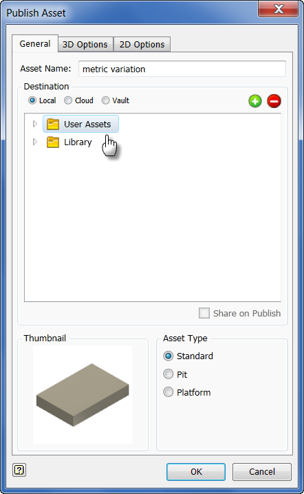 Asset Builder to specify the landing surface, asset properties, optional insertion points, connectors, define the variants, and publish the asset. (In this procedure, only the landing surface and variants are defined.)