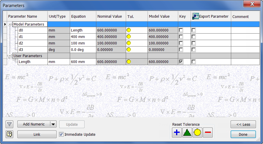 Length key parameter previously defined. The check box to the right of the parameter name should be checked.