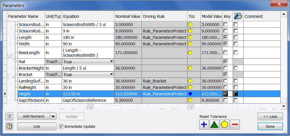 iLogic rules have been created governing parameter relationships as shown in the