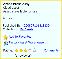 Asset Browser, click on, or hover your cursor over, the shared cloud asset you wish to rate or comment on. A shareable cloud asset is distinguished from non-shareable assets by the star rating and