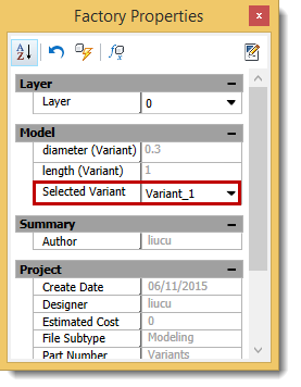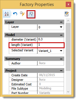 Factory Properties browser to activate the Model Parameter variant name.