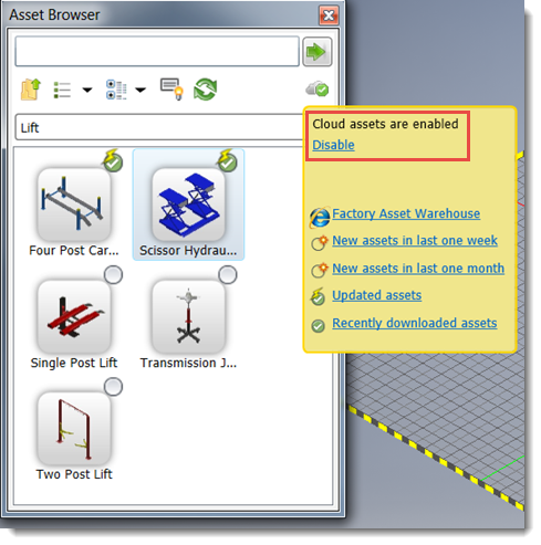 Disable from the pop-up cloud asset information window. Observe that this window also displays information about the status of cloud-based assets and provides access to the Web-based