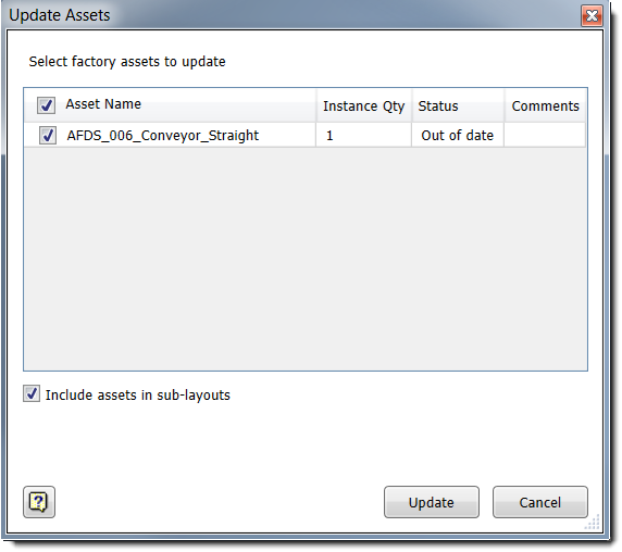 Include assets in sub-layouts checkbox to also update assets that are placed in subassemblies.