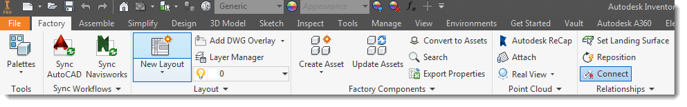 Place assets with multiple connectors and then select the Connect command.